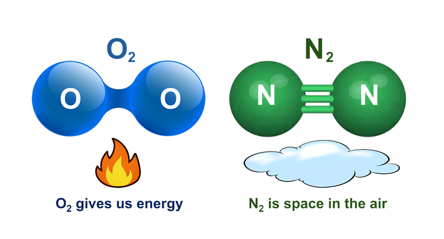 What many people don’t realize is that nitrogen and oxygen exist as molecules in the air we inhale. A molecule forms when two atoms bond together.
